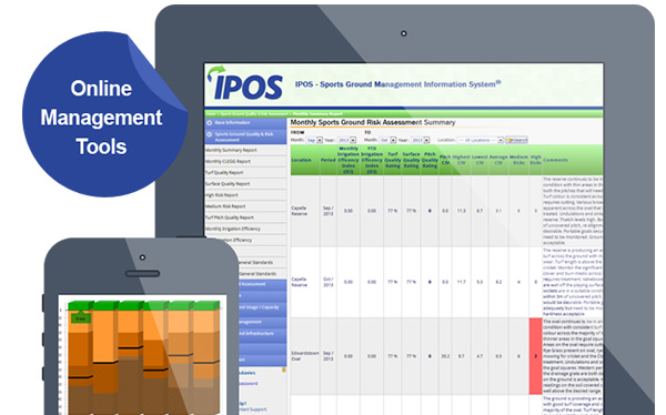 IPOS is a secure client login system integrating all the information you need to manage your sports grounds. Data from all the IPOS Models is presented with trend line graphs, charts, photographs, interactive maps and textual information to assist you in making informed decisions. Models assess turf and surface quality, sports ground risk management, soil structure and nutrition, irrigation efficiency and sports ground usage/capacity.Â